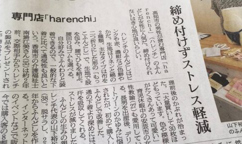 ブランド日本ふんどし協会賛同ブランドのふんどしブランド『harenchi(ハレンチ)』さんが、朝日新聞高知版に登場。 店主の山下さんは、 なんと脱サラしてこのふんどしブランドを立ち上げられ、高知では有名な方。 主に可愛い女性用の…